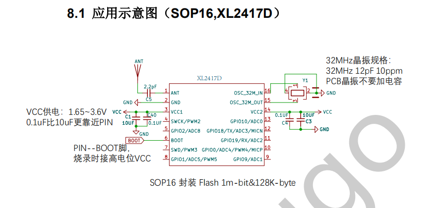 XL2417D无线收发SOC芯片,射频收发性能优异,集成32位MCU发表时间:2025-09-05 14:41 XL2417D芯片是深圳市芯岭技术公司的一款高性价比,高度集成的2.4G SoC芯片,集成了高性能2.4GHz射频收发器、丰富的基带功能、32位MCU和各种外围IO。丰富的外围设备包括了10通道通用ADC、上电复位(POR)、低电压复位(LVR)、UART/I2C和多达11个GPIO。XL2417D支持128KB 的flash 和 8KB 的 RAM,可以实现可编程协议和配置文件。 XL2417D的工作电压范围为1.7~3.6V,芯片在Tx和Rx模式下功耗极低,待机模式4.8uA,在电池供电系统中使用寿命长,同时可保持优异的射频性能。该设备可以进入超低功耗睡眠模式,在该模式中,当低功耗振荡器和睡眠定时器打开时,寄存器和保留存储器内容被保留。 XL2417D可适用于HID 应用、语音遥控器、电机控制、照明控制、无线传感器网络、防丢器应用等多种应用场景。 XL2417D芯片主要特性: 出色的2.4G射频收发性能: -96 dBm Sensitivity@1Mbps; 低功耗: 睡眠模式1.6 uA,待机模式4.8uA; 外围电路简单: 板子不挑天线,BOM最低只要一颗晶振+一颗电源滤波电容 内核 Core: 32bit MCU max 64MHz,支持 XIP,128KB 闪存,8 KB SRAM+4KB ROM。 模数转换 ADC: 11路(外部7路+内部4路)12bit通用ADC,最高速率1M采样率。 定时器 Timer: 4*32bit 通用定时器+2个32位aon定时器+24位rtc+24位systick。 脉宽调制 PWM: PWM(6路, 其中4路带死区控制互补输出),最高16位连续可调,支持中心对齐模式,支持刹车,支持pmw和adc联动。 串口: XL2417D芯片包含I2C、2路UART;最多11个GPIO可用。 实时时钟 RTC: 支持定时和触发两种模式。 独立看门狗 WDT: 支持 2 种工作模式,用户可以根据需要选择不同的工作模式。 |