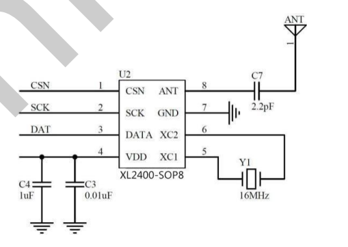 2.4G无线收发芯片 XL2400,SOP8封装,外挂MCU使用发表时间:2023-07-07 15:57 XL2400 芯片是工作在 2.400~2.483GHz 世界通用 ISM 频段的单片无线收发芯片。该芯片集成射频收发机、频率收生器、晶体振荡器、调制解调器等功能模块,并且支持一对多组网和带 ACK 的通信模式。发射输出率、工作频道以及通信数据率均可配置。芯片已将多颗外围贴片阻容感器件集成到芯片内部。容易过 FCC 等认证。 XL2400主要特性: 功耗较低 发射模式(0dBm)工作电流 13.7mA;接收模式工作电流 12.3mA;休眠电流 2uA。 节省外围器件 支持外围 4 个元器件,包括 1 颗晶振和 3 个贴片电容; 支持双层或单层印制板设计,可以使用印制板微带天线; 芯片自带部分链路层的通信协议;配置少量的参数寄存器,使用方便。 性能优异 125K / 250K / 1M / 2M bps 模式的接收灵敏度为-96.5 / -95 / -92 / -90dBm; 发射输出功率最大可达 8dBm; 抗干扰性好,接收滤波器的邻道抑制度高,接收机选择性好。容易过 FCC 等认证。 四线 SPI 接口通信 SPI 接口速率最高支持 4Mbps 支持最大数据长度为 128 字节(4 级 FIFO) SOP8 封装 1M / 2Mbps 模式,需要晶振精度 ±40ppm&CL=12pF 125K/250kbps 模式,需要晶振精度 ±20ppm&CL=12pF BLE 广播包模式,需要晶振精度 ±10ppm&CL=12pF 工作电压支持 1.7~3.6V;工作温度支持-40~+125℃ GFSK 通信方式 支持自动应答及自动重传 XL2400典型应用领域: 无线鼠标键盘 电视和机顶盒遥控器 无线游戏手柄 遥控玩具 有源无线标签 智能家居及安防系统 XL2400芯片工作状态说明: XL2400 系列芯片的各种工作模式,以及用于控制芯片进入各工作模式的方法。XL2400 在VDD 大于 1.7V 才开始正常工作。 即使进入休眠模式,MCU 还是可以通过 SPI 发送配置命令及CE 管脚使芯片进入其它 5 种状态。 如上所示,系统包括 5 个主要状态,分别如下: 1.POWER DOWN。数字系统断电状态。 2.STANDBY。系统上电后自动进入该状态。 3.STANDBY ONE。当配置为 PTX 器件,且CE=1 持续时间大约 10us,且 TXFIFO 中没有数据,系统进入该状态,等待发送数据。 4.TX ON。当配置为 PTX 器件,且 CE=1 持续时间大约 10us,且 TXFIFO 中有数据,系统进入该状态。在该状态下完成数据的发送处理,系统会启动发送控制状态机进行工作,直到数据发送完成。若配置自动ACK 接收,则系统会进入RX ON 状态开始接收ACK。 5.RX ON。当配置为 PRX 器件,且CE=1 时,系统进入该状态。在该状态下完成数据的接收处理,系统会启动接收控制状态机进行工作,直到接收到一个帧。当配置自动 ACK 发送,则系统会就进入 TX ON状态发送 ACK。若PTX 器件有效,且自动 ACK 接收使能,则还会启动发送重传。 |